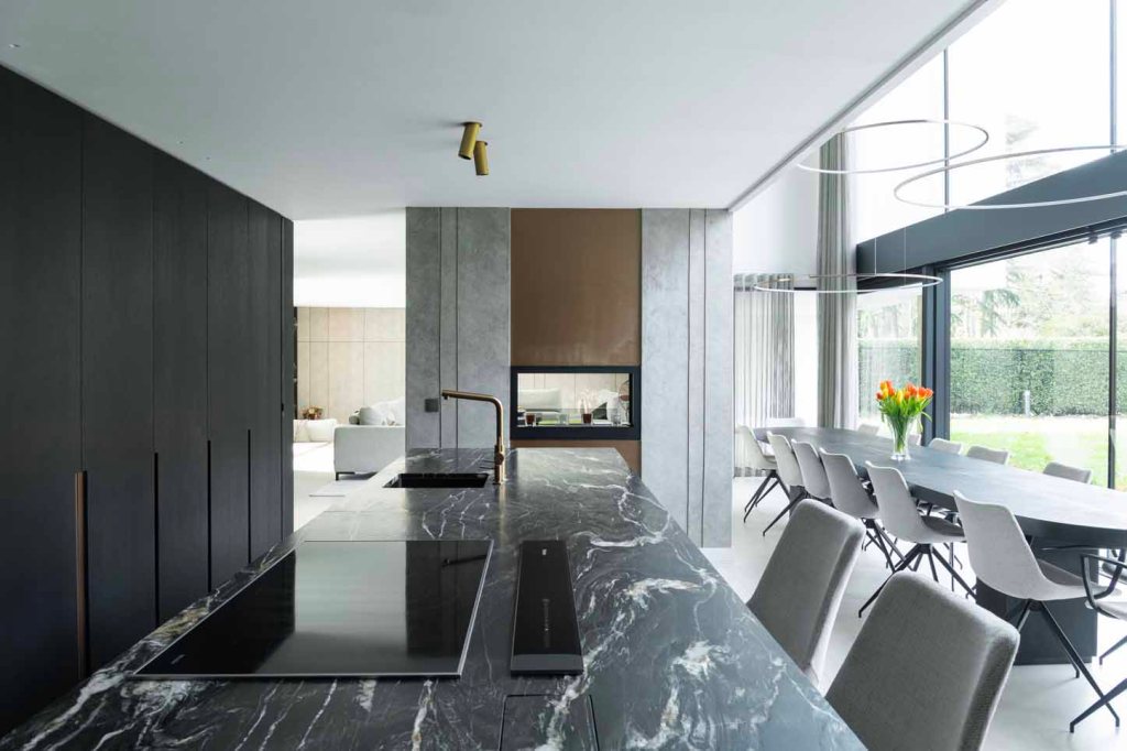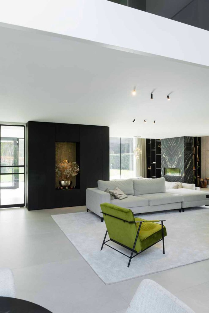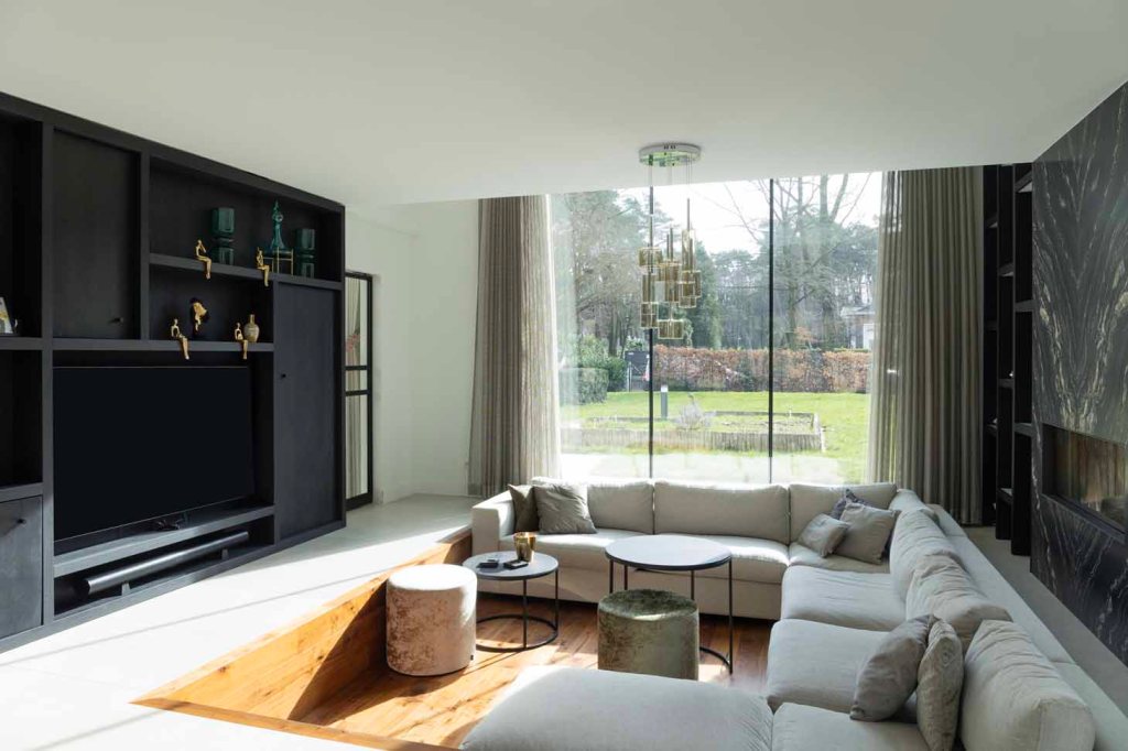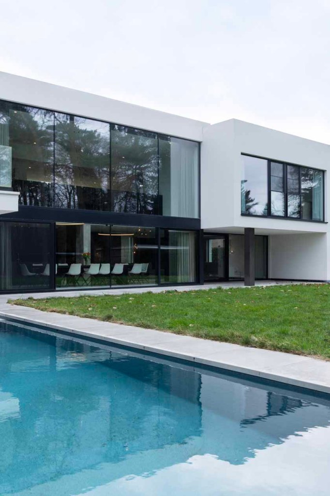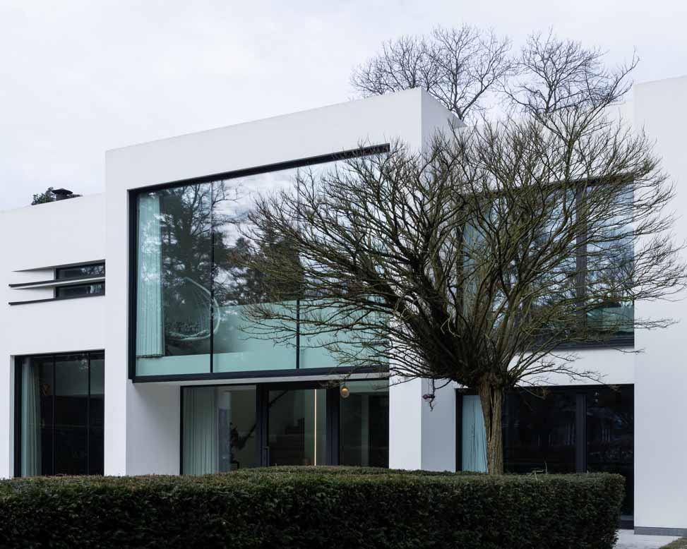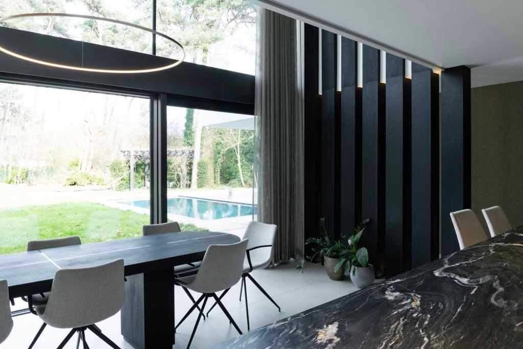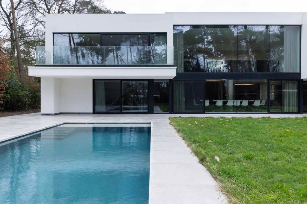 De woning werd volledig op maat van de klant ontworpen tot een luxueuze oase waar de bewoners kunnen genieten van rust in het groen.