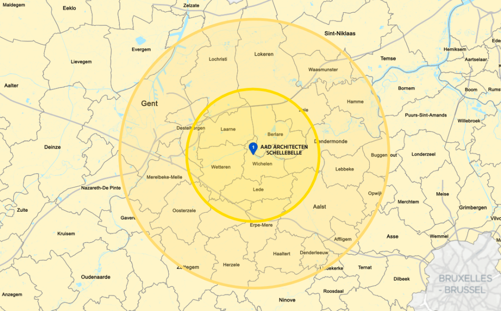 Buiten deze regio en op zoek naar een architect? Aarzel niet ons te contacteren. We denken graag mee hoe we jullie verder kunnen helpen.